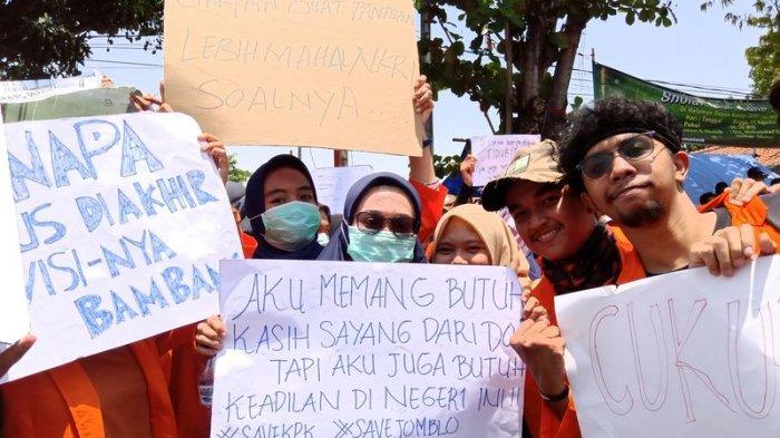 Pantauan Tribuncirebon.com di lokasi, banyak dari mahasiswa itu membawa aneka macam poster beragam tulisan sebagai bentuk protes terhadap Dewan Perwakilan Rakyat.