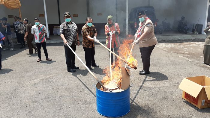 "Tersangkanya sudah divonis pengadilan dan barang buktinya kami hancurkan," kata M Syarifuddin saat ditemui usai pemusnahan.