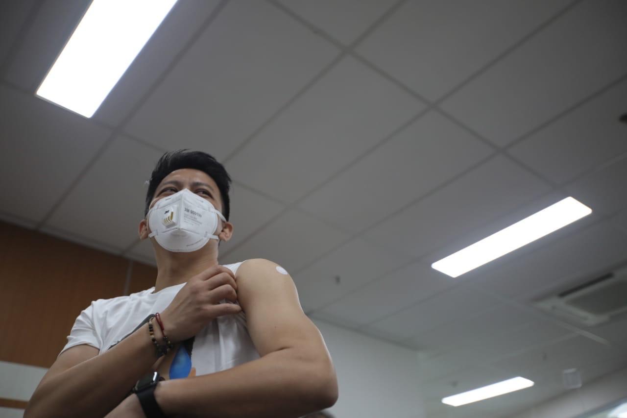 Mudah-mudahan enggak ada apa-apa. Katanya sih satu jam setelah vaksin ada pegal, tapi sejauh ini enggak kerasa. Tapi kita lihat sejam lagi," ujar Ariel.