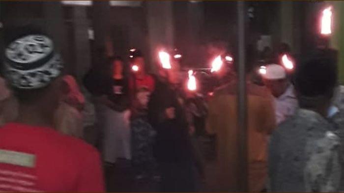 TRIBUNCIREBON.COM, INDRAMAYU - Sejumlah warga di Desa/Kecamatan Kertasemaya, Kabupaten Indramayu berkeliling kampung sembari membawa obor, Kamis (1/7/2021) malam.