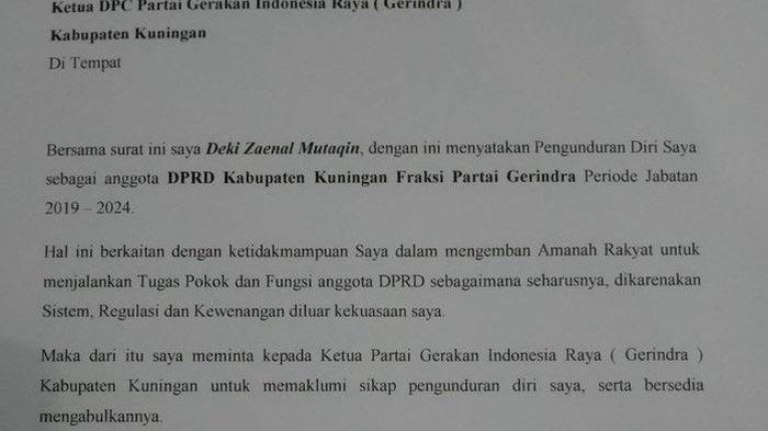 Bersama surat ini saya Deki Zaenal Muttaqin, dengan ini menyatakan Pengunduran Diri Saya sebagai anggota DPRD Kabupaten Kuningan Fraksi Partai Gerindra Penode Jabatan 2019 — 2024