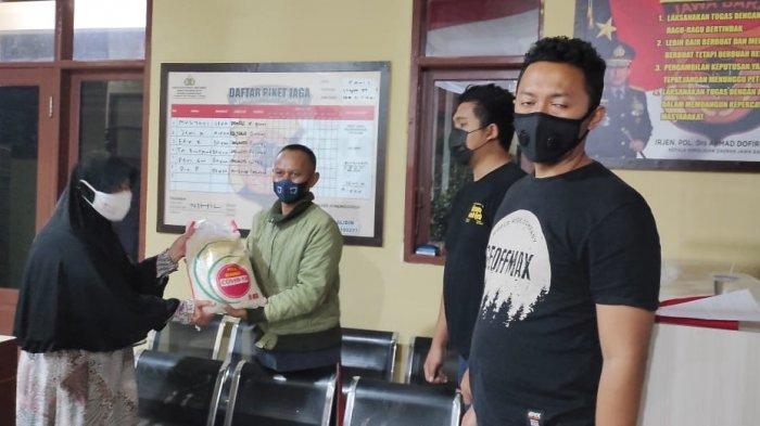 Upaya meringankan beban kebutuhan EH, Kapolsek pun memberikan paket sembako saat ia akan pulang usai menjalani pemeriksaan.