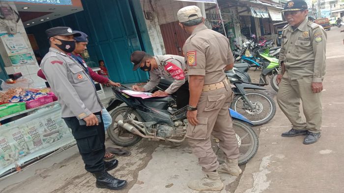 Petugas gabungan dari Kecamatan, Satpol PP, hingga kepolisian merazia para pengguna knalpot bising di wilayah Kecamatan Kedokanbunder, Indramayu