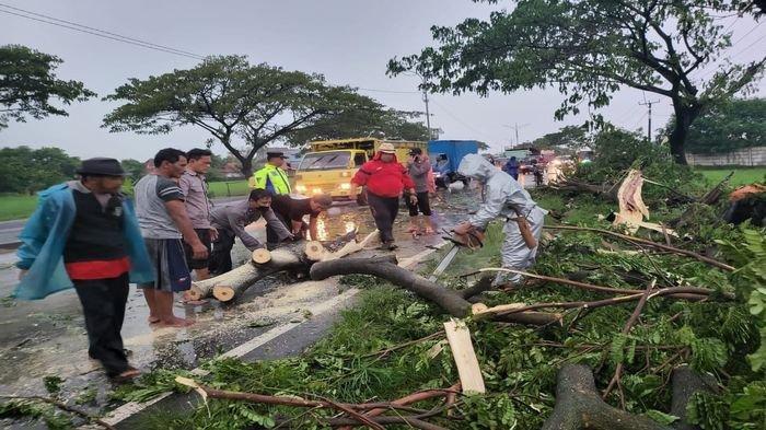 Ada sebanyak 5 pohon tumbang di sana, pohon yang tumbang tersebut sempat melintang dan mengakibatkan arus lalu lintas di Jalur Pantura Indramayu dari arah Cirebon menuju Jakarta tersendat.