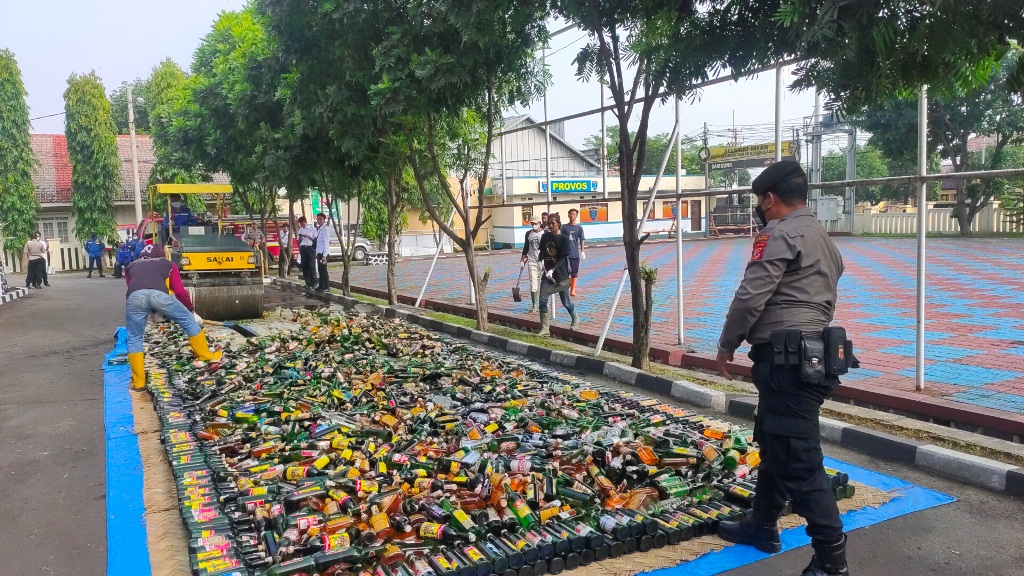 Berkat kerja kerasnya, ribuan botol miras dapat disita dari para oknum untuk menciptakan suasana kondusif di masyarakat.