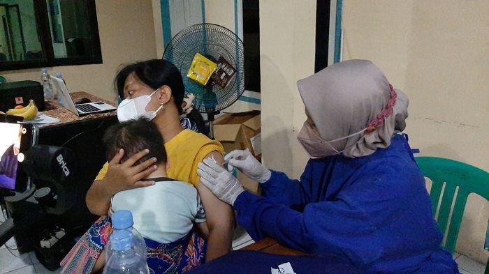 TRIBUNCIREBON.COM, CIREBON - Sejumlah emak-emak tampak antusias mengikuti vaksinasi Covid-19 di Balai Desa Weru Lor, Kecamatan Weru, Kabupaten Cirebon, Selasa (5/4/2022) malam.