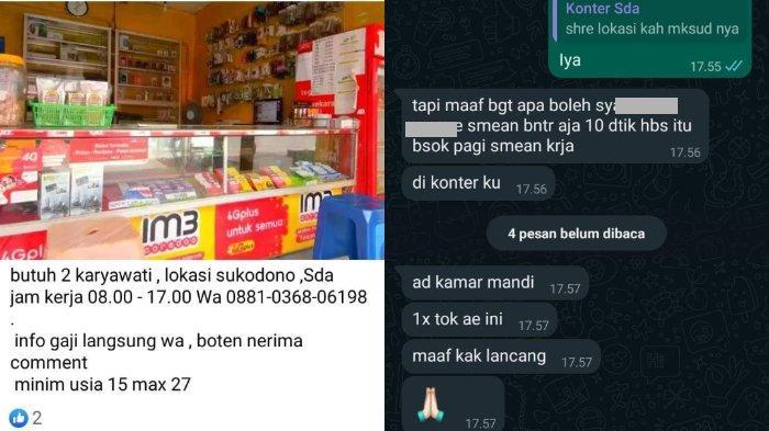 Seorang anggota grup mengunggah screenshot lowongan kerja sebagai penjaga konter.