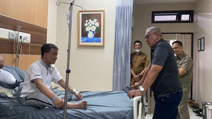 Dalam foto terlihat Dede sedang duduk di atas tempat tidur perawatan rumah sakit, sedangkan H Acep Purnama berdiri dan terlihat sedang berbincang.