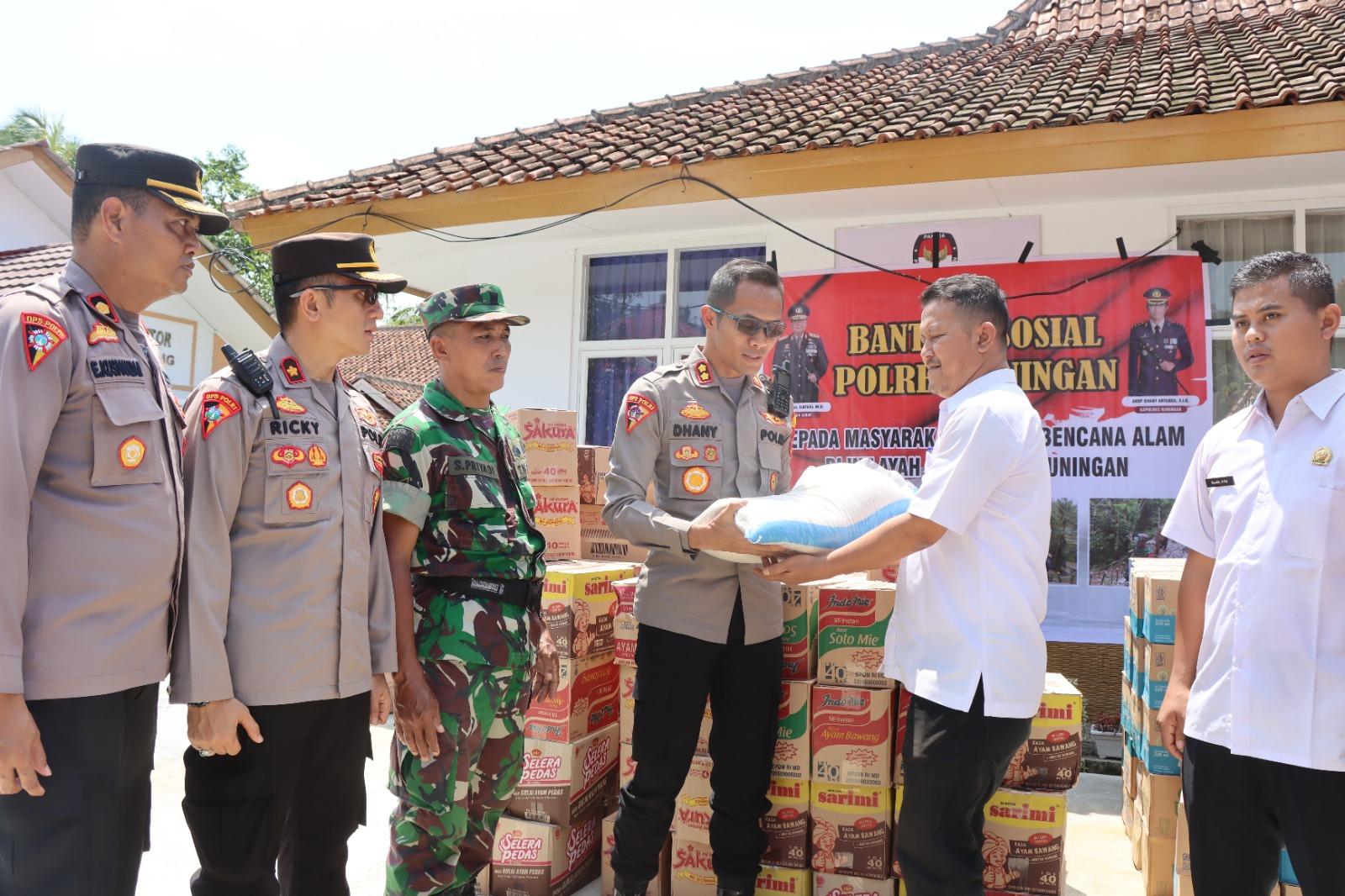 AKBP Dhany Aryanda menyampaikan, penyaluran bantuan sosial tersebut segabai wujud kepedulian Polri kepada masyarakat korban bencana alam yang terjadi di Kabupaten Kuningan.
