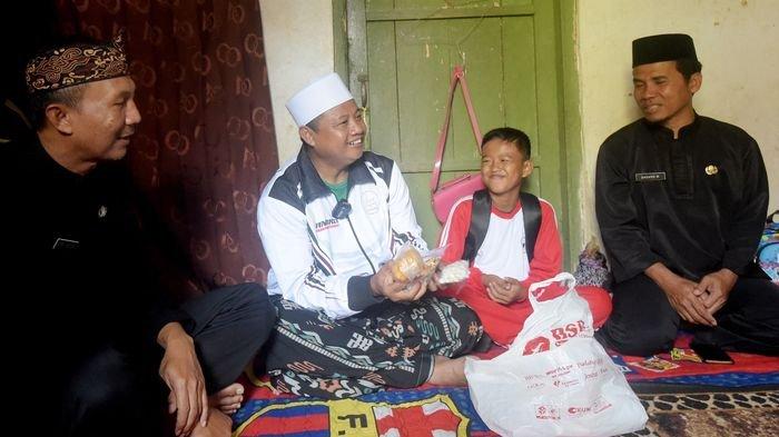 Plh. Gubernur Jawa Barat Uu Ruzhanul Ulum menyambangi kediaman Aria di Kampung Mekarsari, Desa Manggungjaya, Kecamatan Rajapolah, Kabupaten Tasikmalaya, Selasa (25/7/2023).