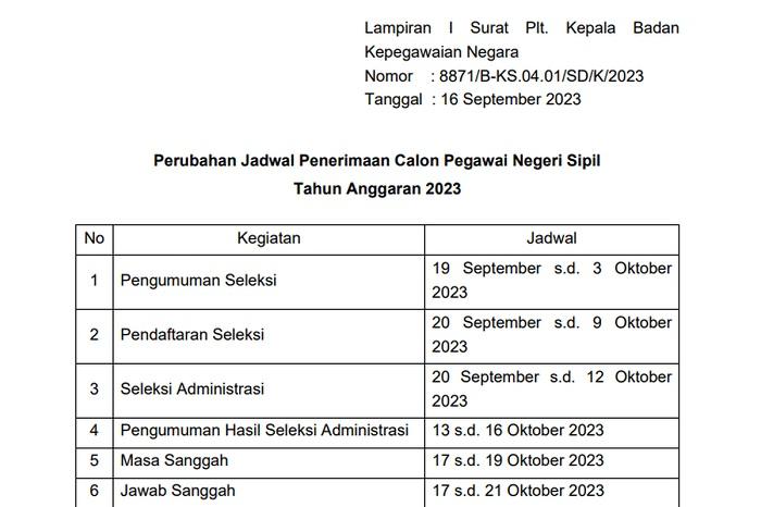 sebelumnya pendaftaran CPNS ditetapkan pada 17 September 2023, kini diundur menjadi 20 September 2023
