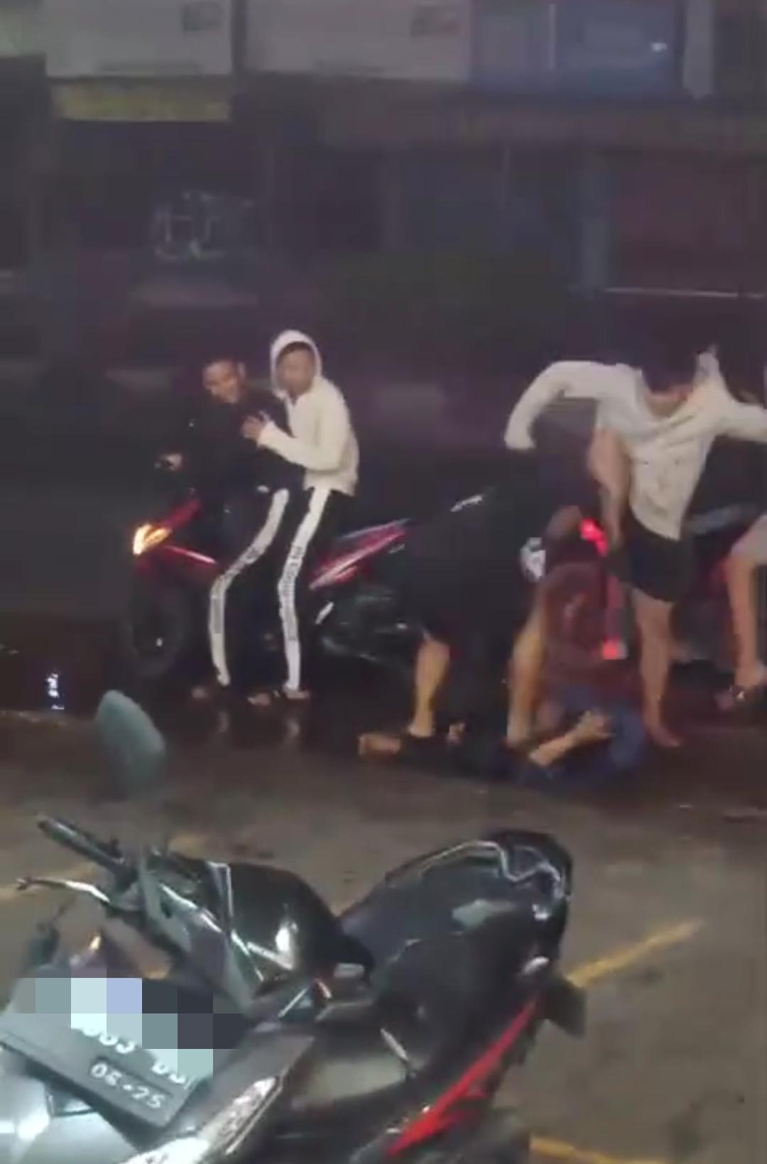 Dalam rekaman video tersebut, tampak sekelompok pemuda yang diduga geng motor terlibat menyerang dengan sekelompok orang lain.
