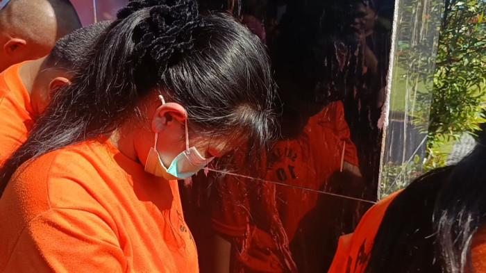 Saat konferensi pers, pelaku dihadirkan bersama sejumlah tersangka kasus lain.