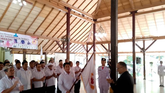 Pengukuhan dilakukan langsung oleh Ketua KONI Jawa Barat, Prof. Dr. H. Muhammad Budiana, dalam prosesi pelantikan 54 pengurus baru KONI Kabupaten Cirebon di Pendopo Bupati Cirebon, Selasa (14/10/2025).