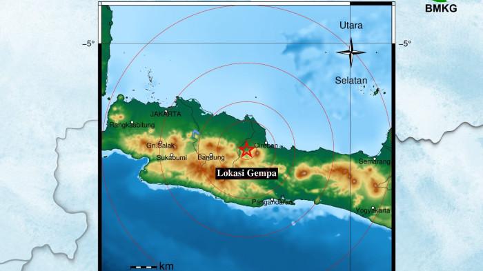 Berdasarkan data dari Badan Meteorologi, Klimatologi, dan Geofisika (BMKG), pusat gempa terkini di Majalengka ini berada di darat.