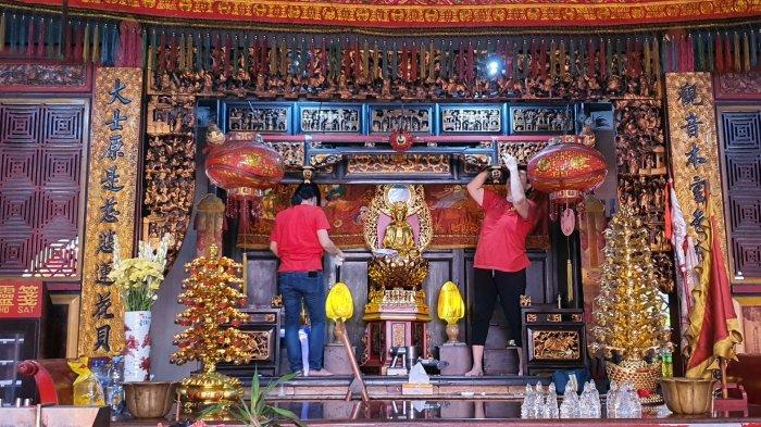 Menilik Tradisi Membersihkan Patung Dewa di Wihara Dewi Welas Asih Cirebon Jelang Tahun Baru Imlek